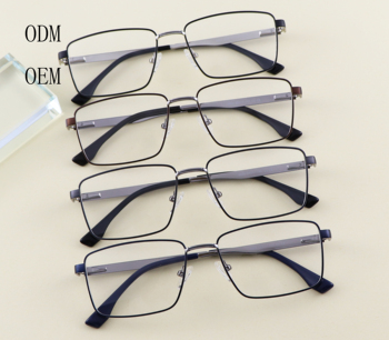 Occhiali ottici da uomo alla moda in lega cornici blu blu luce che blocca la lente con stampa solida rettangolare/ovale Anti-blu diamante