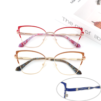 Occhiali da Vista Anti-Luce Blu di Alta Qualità per Donne Adulte, Montatura Completa Stile Occhio di Gatto con Motivo Stampato per Viso a Diamante
